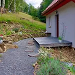 Zur Entspannung der Gäste bietet die 1-Zimmer-Villa Domek Za Lipa Rosciszow eine Terrasse, ausgestattet mit einer Küchenzeile.
